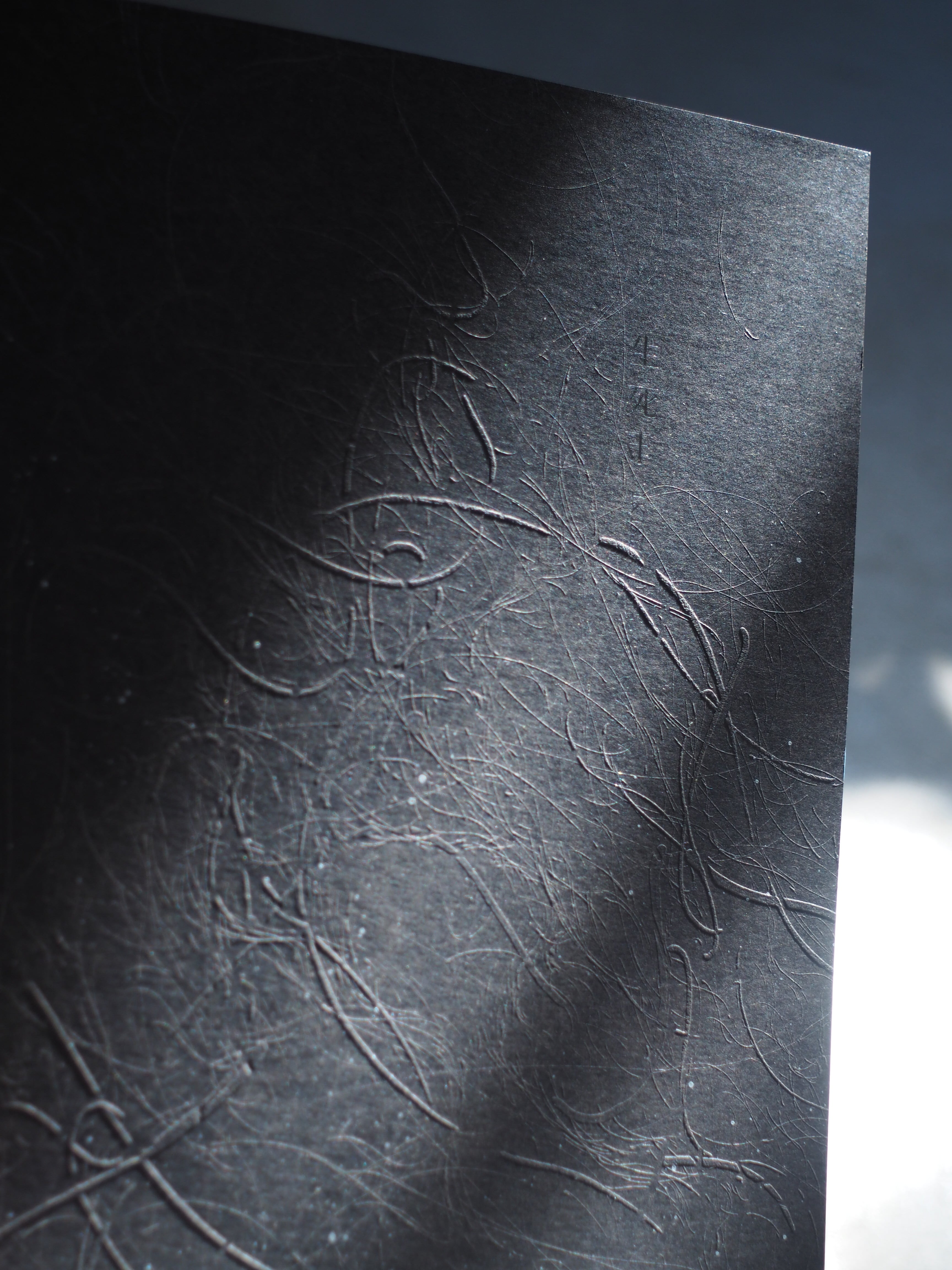表紙 : 松井が銅版にてエンボス加工を行い、西川が雲母・アクリルにてスパッタリングを施しております。
